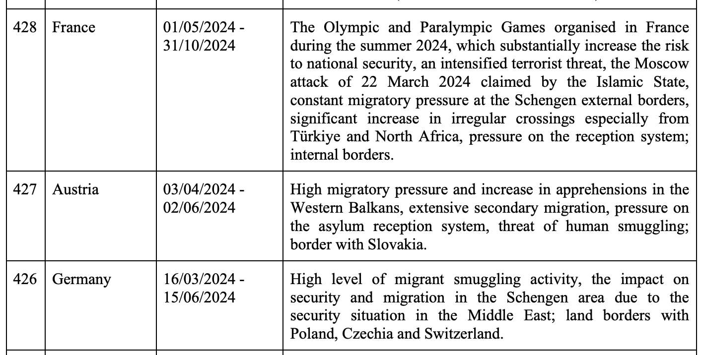 More recently, the Russian invasion of Ukraine, terrorism, and renewed tensions in the Middle East have been cited as reasons to keep border controls in place - but "migratory pressure" is still commonly invoked as well.