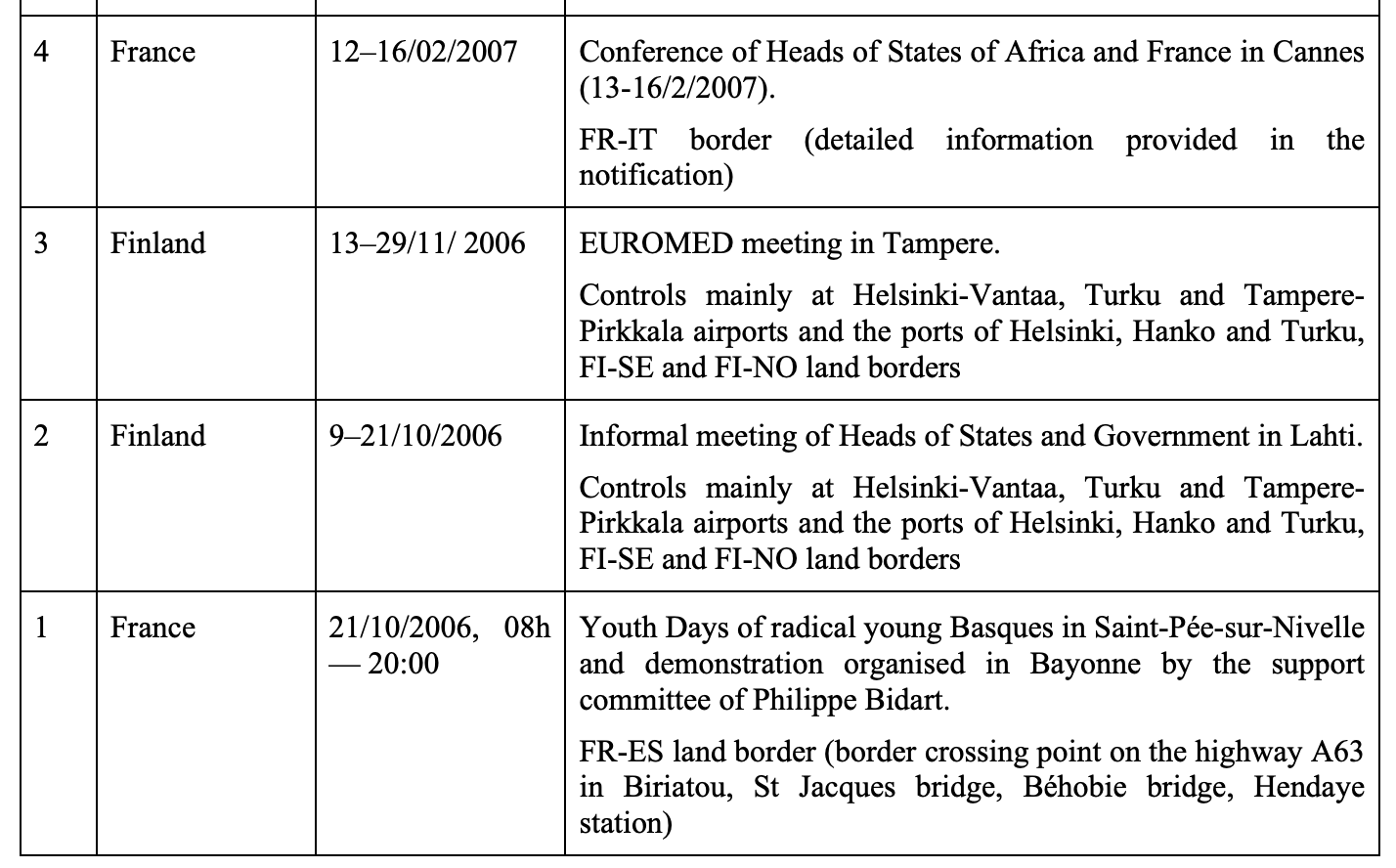 In this article, we'll explore this question with the aid of some publicly available (and poorly formatted) data: the complete list of temporary border reintroductions since 2006.