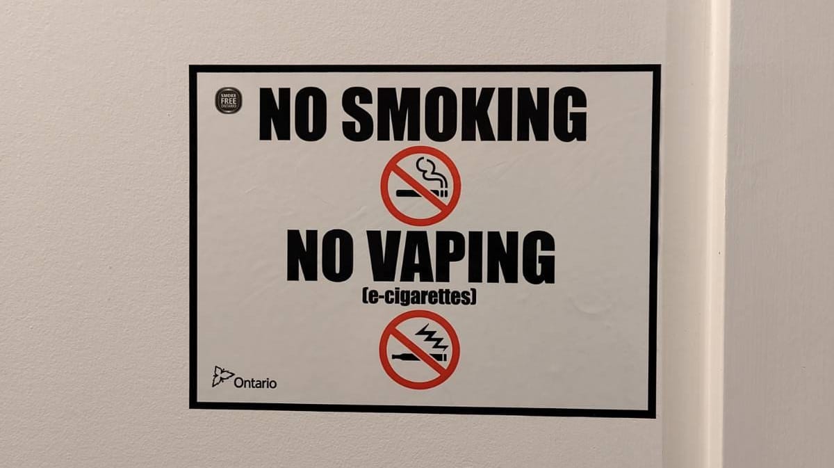 These signs tell you what not to do. Here the Ontario provincial logo at bottom-left immediately escalates to the implied threat of legal punishment. This legalistic approach is extremely common with No signs.