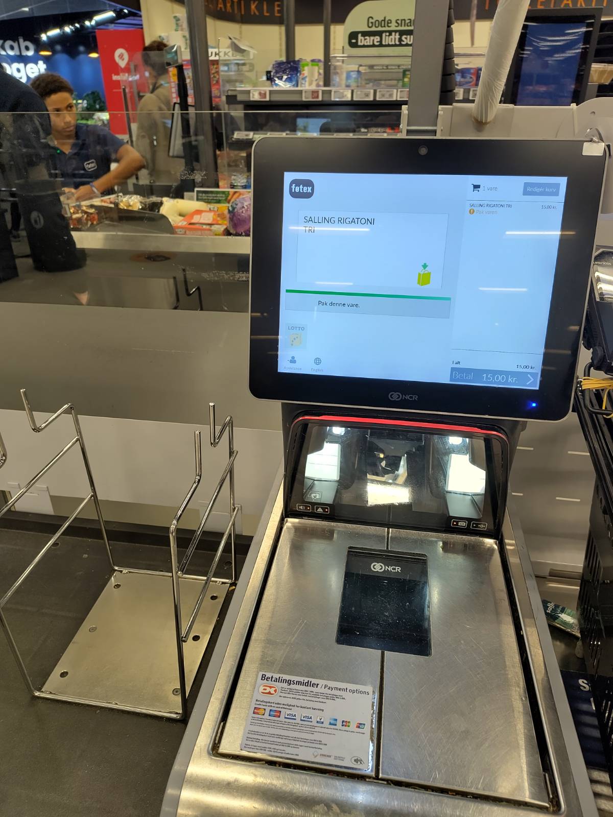 And a low-trust self-checkout at competing grocery chain Føtex:
